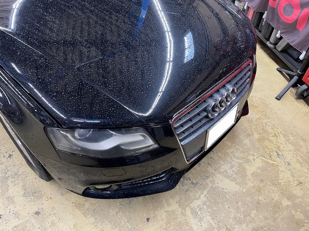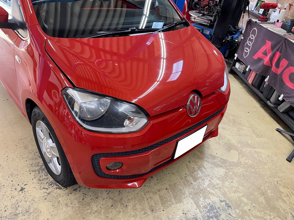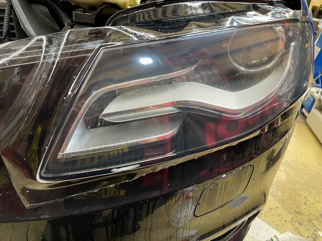 こちらのお客様5年くらい前に磨き、コーティングしておりました。当時フィルムメニューがなく劣化が早く来てしまいました。