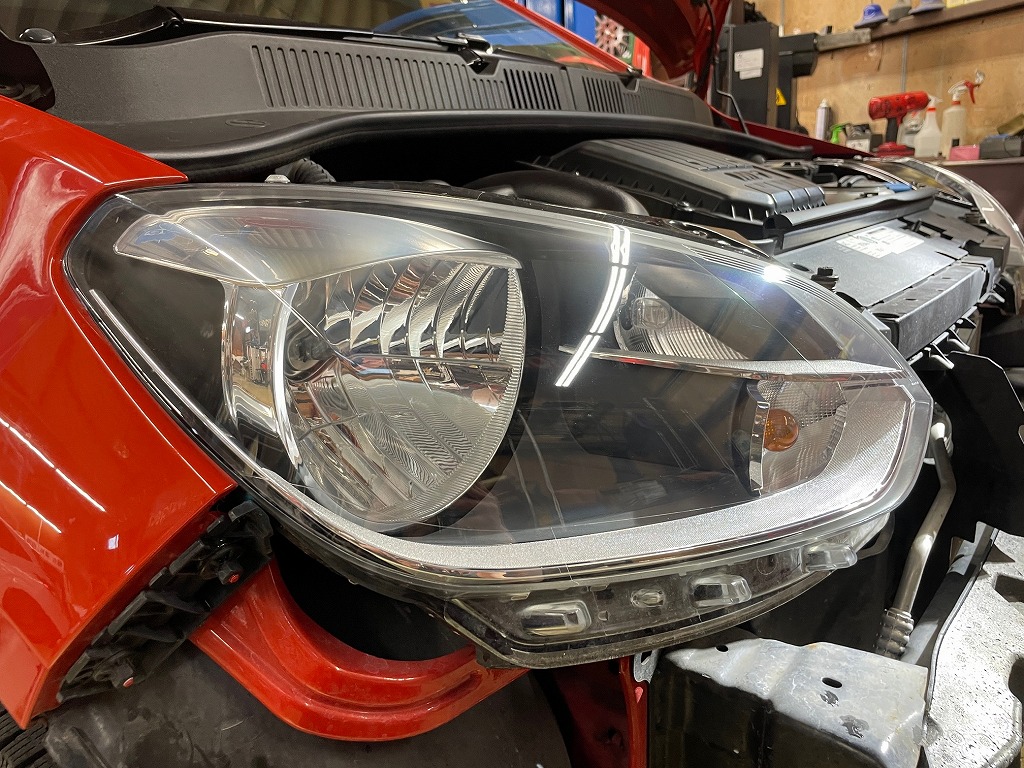 ヘッドライトがくすんでライトの暗さが際立ち始めました